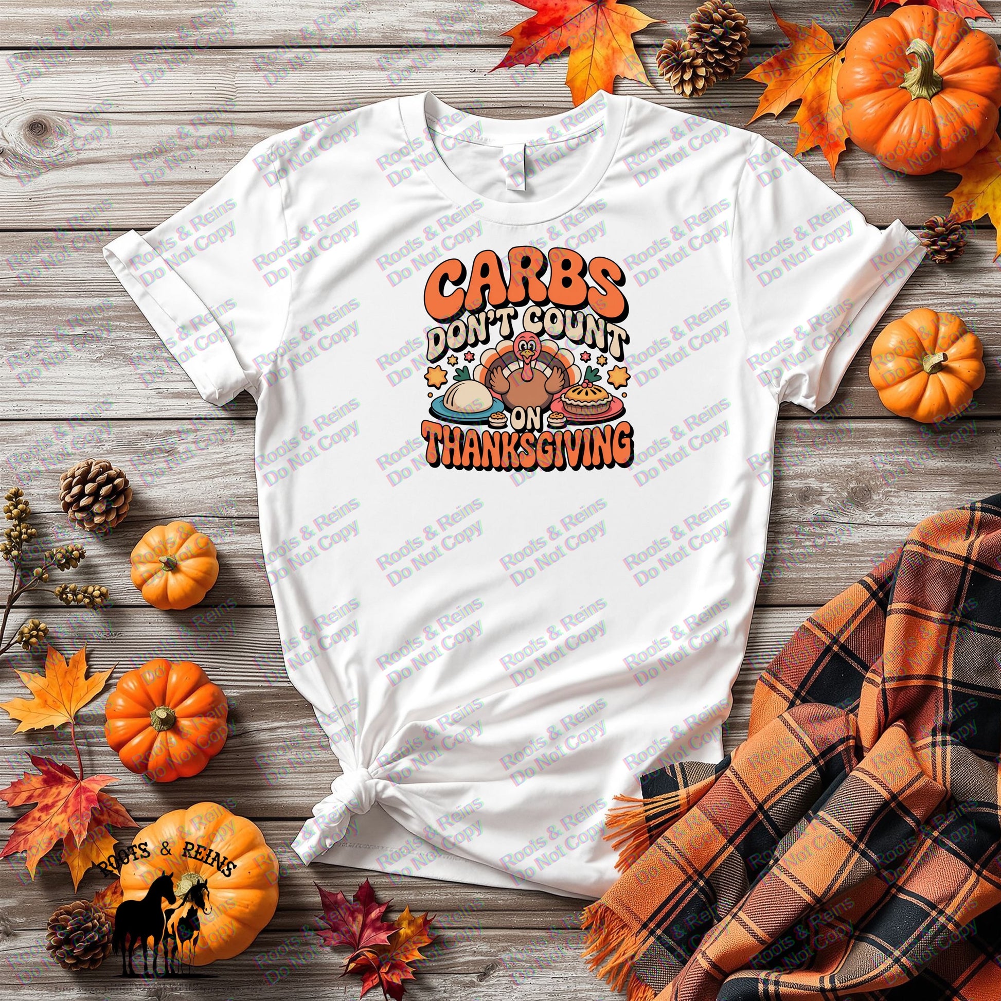 Indulge guilt-free this holiday with the “Carbs Don’t Count on Thanksgiving” digital design! This fun and festive graphic features a happy turkey surrounded by all your favorite holiday carbs — from pies to rolls — in warm retro colors that perfectly capture the Thanksgiving spirit. Ideal for creating t-shirts, aprons, mugs, tote bags, or kitchen décor that remind everyone that calories don’t count on the big feast day!