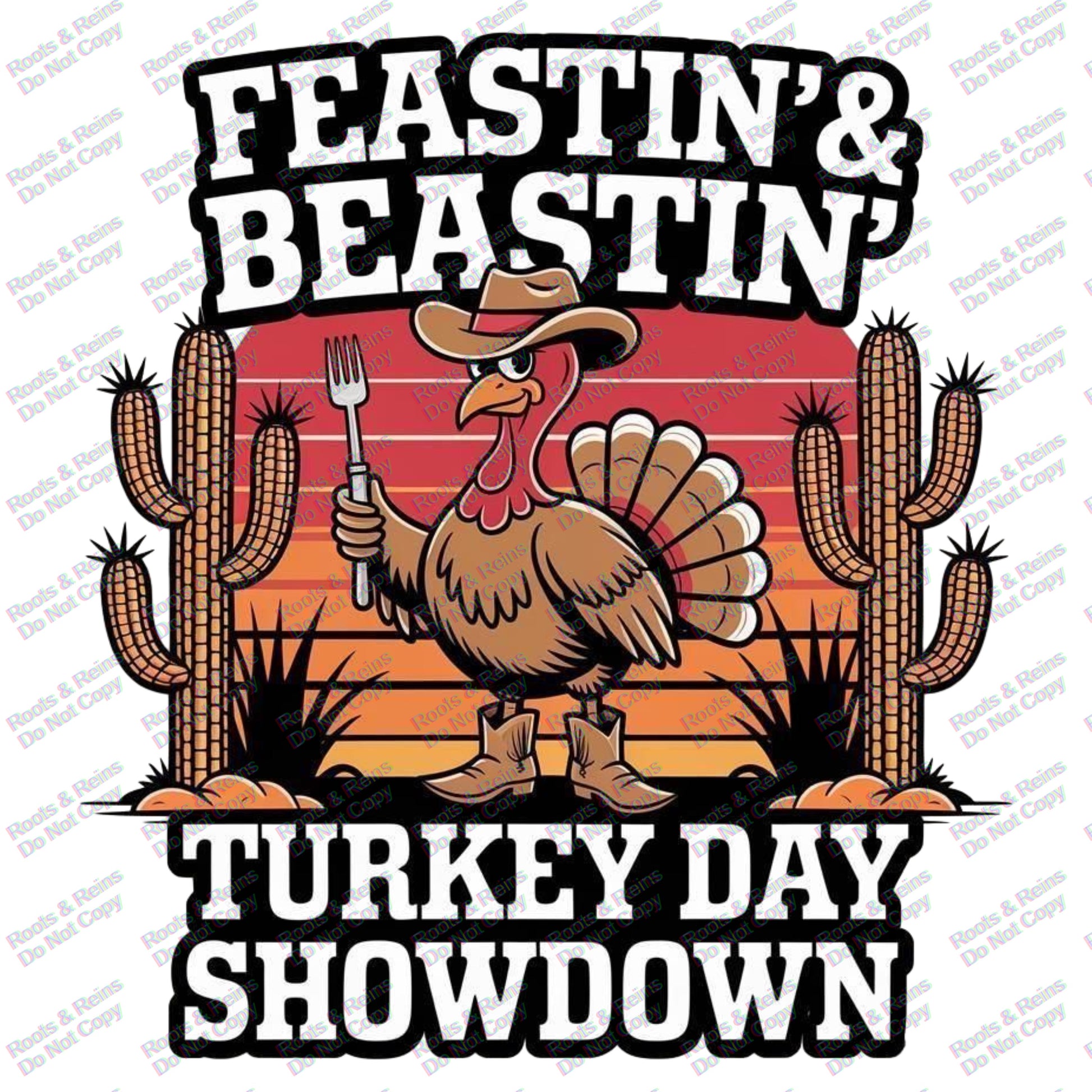 Bring bold Western flair and Thanksgiving humor to your creative projects with this “Feastin’ & Beastin’ Turkey Day Showdown” digital design! Featuring a cowboy turkey ready for a showdown against hunger, this fun and festive artwork captures the spirit of the holiday with a country twist. Perfect for Thanksgiving t-shirts, aprons, mugs, and party décor, this design is sure to be a crowd favorite among family, friends, and fellow feast lovers.