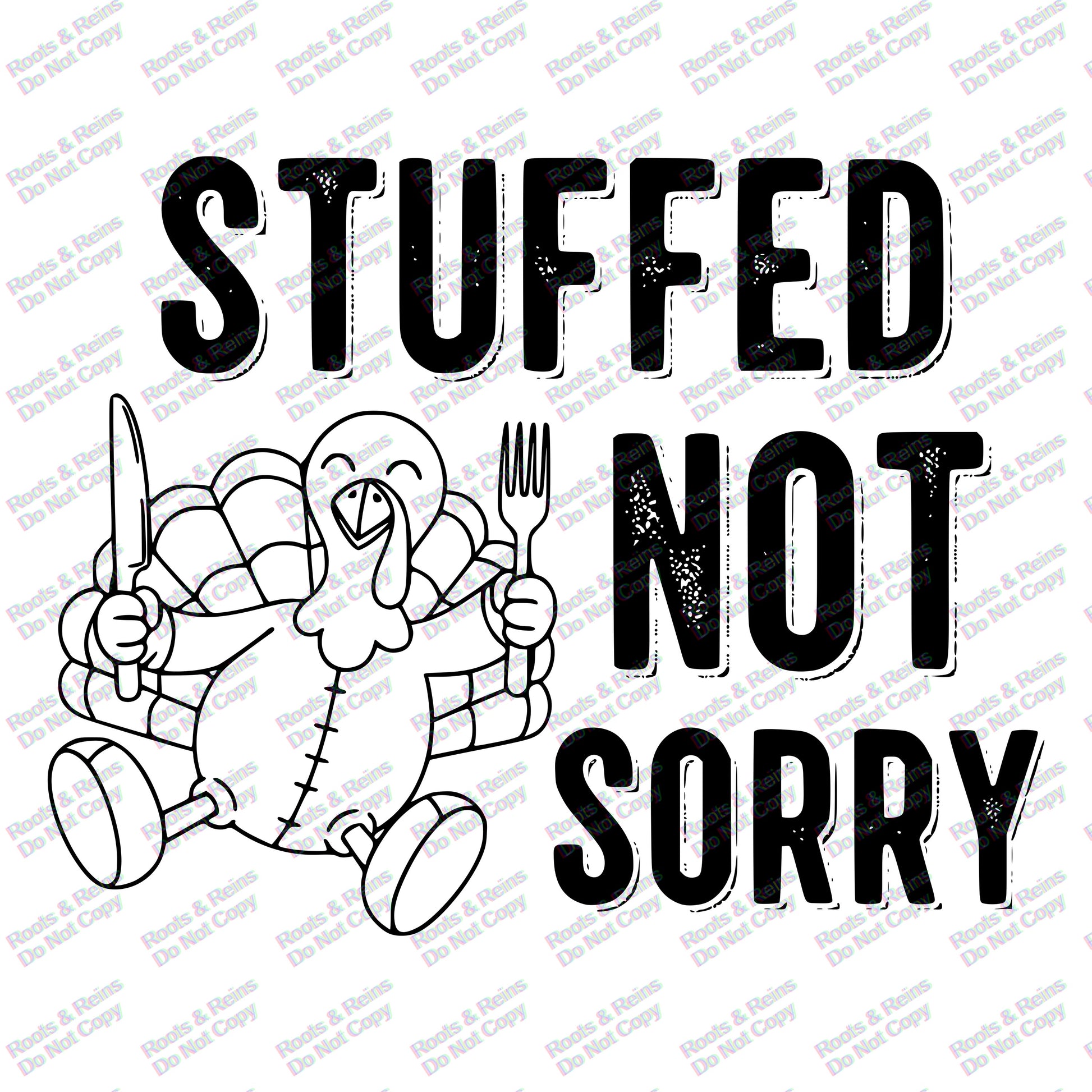 Celebrate Thanksgiving with humor and full-belly vibes using the “Stuffed Not Sorry” digital design! This playful design features a happy turkey holding a fork and knife, ready to feast without an ounce of guilt. Perfect for Thanksgiving t-shirts, aprons, tote bags, or décor, this design brings laughter and festive spirit to every Friendsgiving or family gathering.